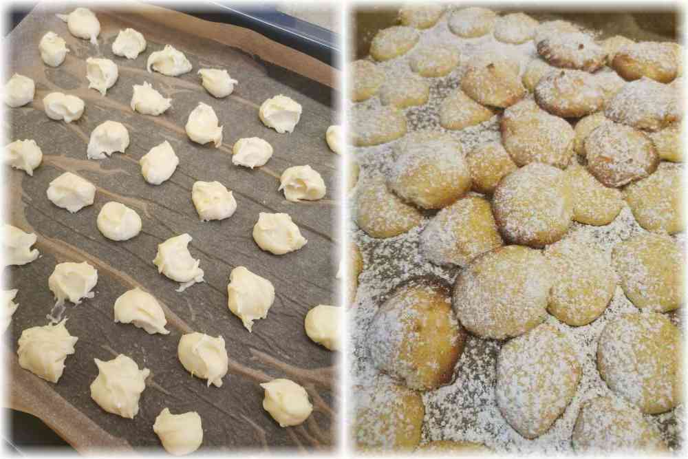 Den fertigen Teig in eine kleine Schüssel füllen und mit 2 Teelöffeln arbeiten. Mit diesen nun kleine Häufchen auf ein mit Dauer Backfolie ausgelegtes Blech setzen.