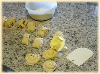 Wenn Sie Rosinenschnecken wünschen, geben Sie ca. 20 Sek. vor Knetablauf 100 g Rosinen