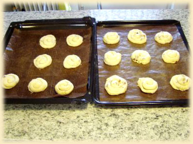 Auf 2 Bleche mit Backpapier legen (Bild 4) und den Ofen auf 50° vorheizen.