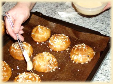 In der Zwischenzeit die Schnecken mit einem mit Milch verquirltem Eigelb bestreichen (Bild 5).