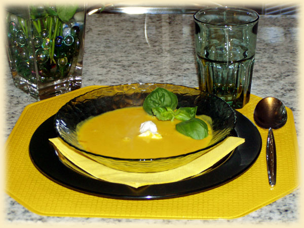Mit gehacktem Basilikum bestreuen und auf jeden Teller einen Klecks Schmand geben. Guten Appetit! |